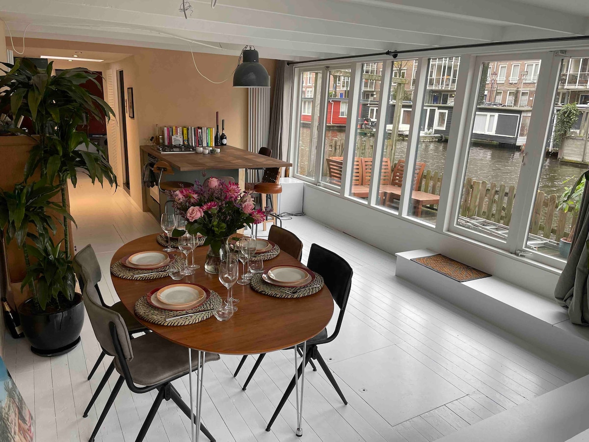 Sončna prostorna Amstelova hiša na vodi | City Center