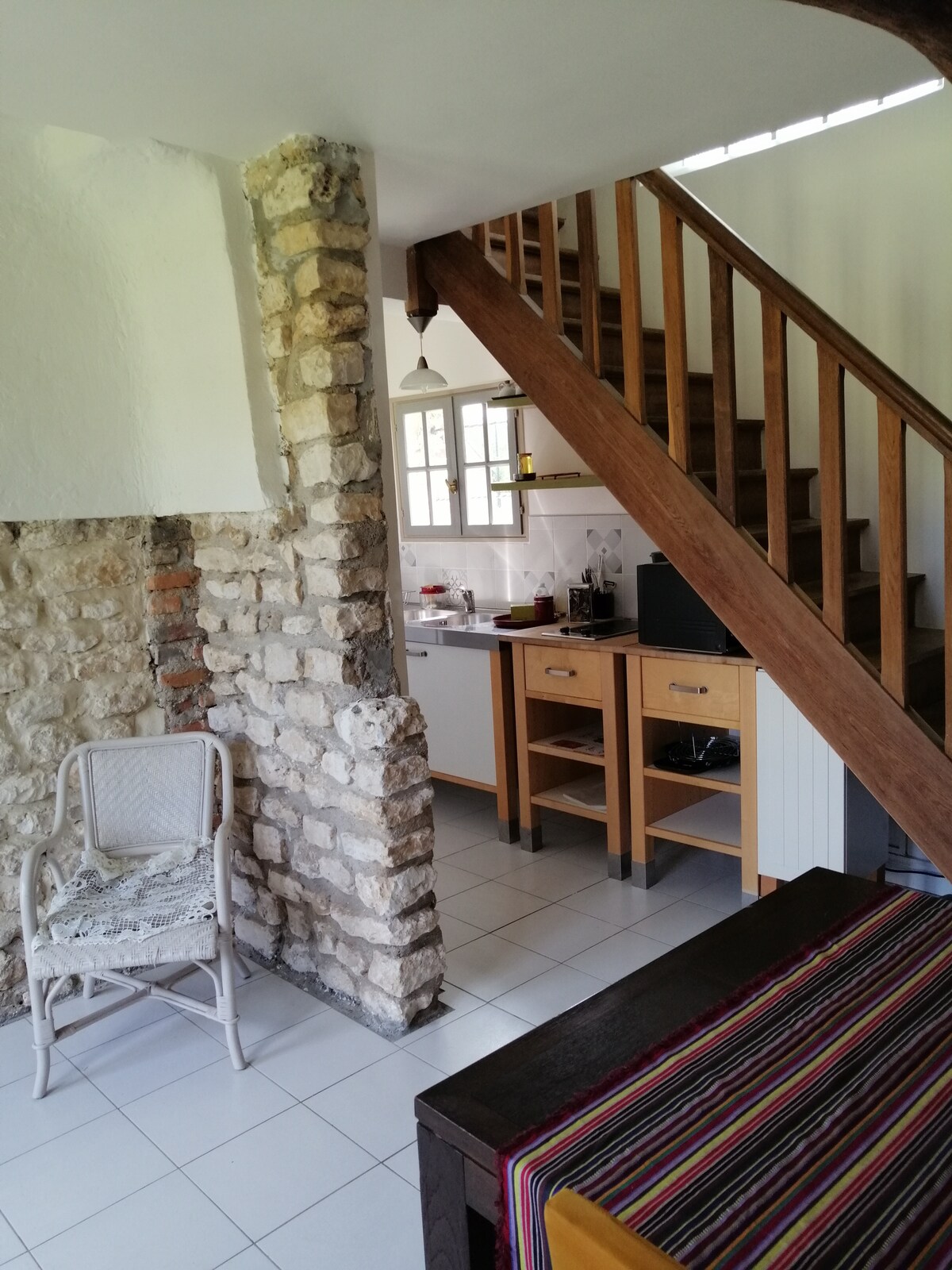 Poleg klasificirane stare cerkve, ki je postavljena v stari mlekarni, v celoti prenovljena 60 m2 s svojim vrtom in neodvisnim dostopom. Velika dnevna soba s televizijo in dve spalnici z zelo dobro posteljnino (ena od vmesnih spalnic) za štiri osebe, posteljnina je na voljo. Sodobna kuhinja, opremljena s pomivalnim strojem in kuhinjsko posodo za vašo uporabo. Nastanitev je 3 minute oddaljena od izhoda z avtoceste A 157
