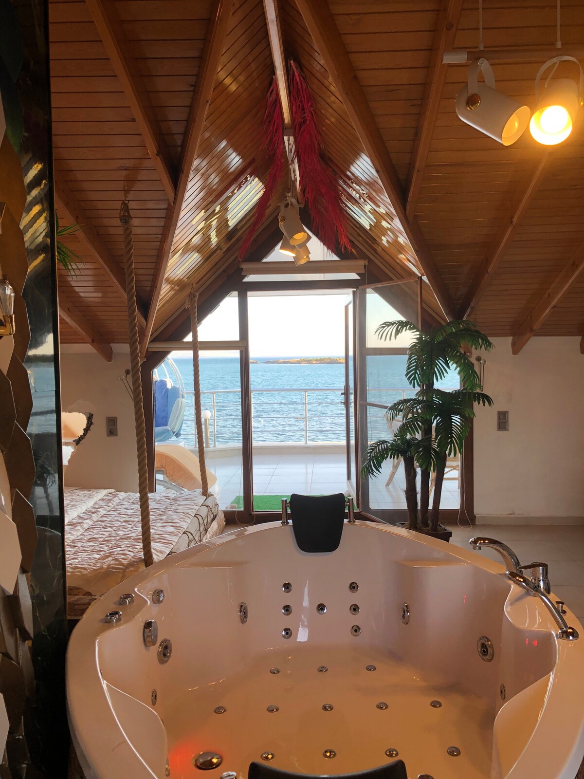 To edinstveno stanovanje se nahaja na plaži in je opremljeno z masažno kadjo XL, ognjiščem, kinom, kaminom, gugalnico, žarom in veliko luksuzne opreme. Stanovanje ima 2 veliki terasi, kopalnico in mini kuhinjo. Stanovanje se nahaja v 3. nadstropju in njegovo uporabo zagotavlja samo z dvigalom. Ima neodvisne vhode in zasebne prostore za uporabo.