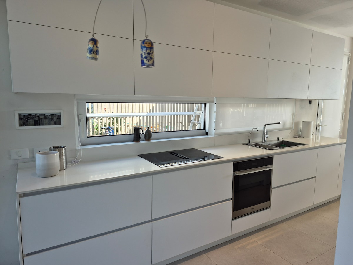 Čudovito celotno stanovanje pred jezerom, z 2 spalnicama, 2 kopalnicama in teraso za žar, v mirnem predelu le 3 minute od letališča. Dnevna jedilnica z velikimi okni in pogledom na jezero. Popolnoma opremljena kuhinja, Wi-Fi, klimatska naprava in talno ogrevanje, pametna televizija, pralni in sušilni stroj. Idealno za uživanje v pokrajini v mirnem, udobnem in okusno urejenem okolju. Idealno za družine ali pare. Garaža, telovadnica, bazen, teniško igrišče in kajakaštvo na jezeru.