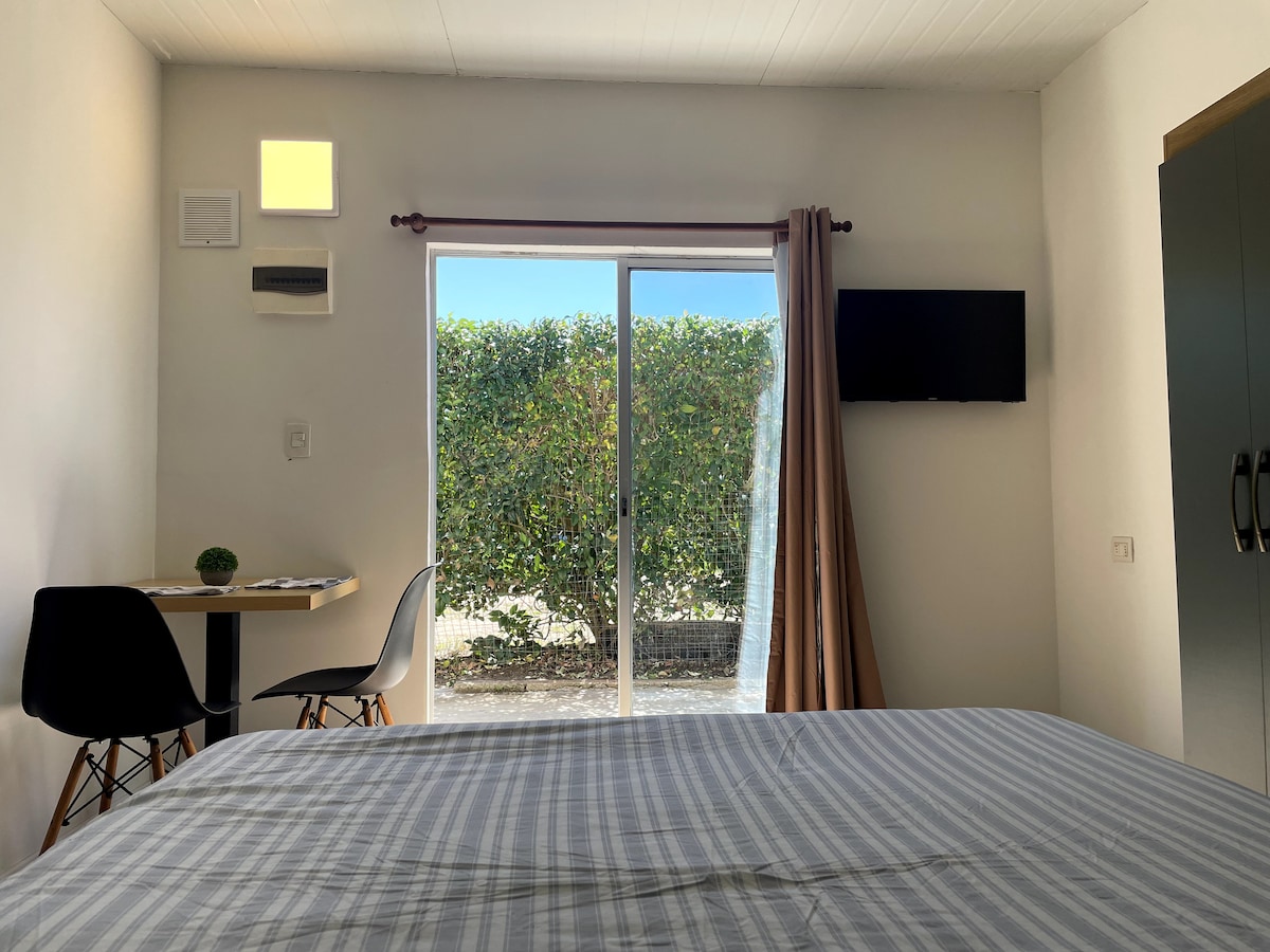 Merilniki od narodnega parka in nekaj ulic od zelo mirne plaže. 5 minut od letališča in 35 minut od središča Montevidea. Živahno stanovanje s klimatsko napravo , kuhinjo, mikrovalovno pečico, mini barom , sommierjem, ki se lahko pripravi na zakon ali za eno osebo,in zasebno kopalnico. Potopljen je v čudovit vrt. Bivališče je namenjeno tistim, ki se želijo v času počitka odklopiti in uživati v naravi. Računajte na garažo za izključno uporabo.