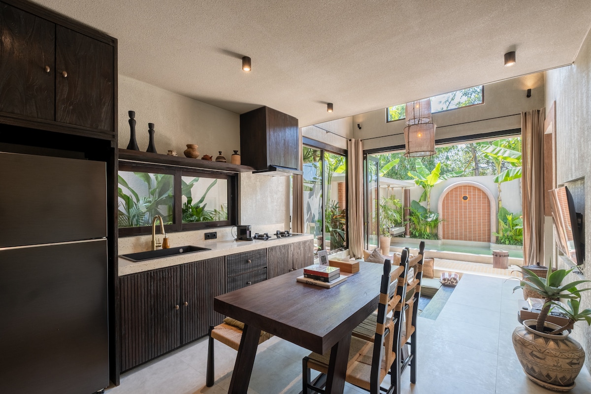 Odkrijte beduinsko predelano stanovanje, zasebno prenočišče 1BR, ki združuje sredozemski šarm s tropskim udobjem v Pererenanu na Baliju. Vila se ponaša z zemeljskimi toni in organskimi teksturami ter je mirno zatočišče za samostojne popotnike, pare ali delavce na daljavo. Vrhunci: Življenjski slog in restavracije: v bližini so kavarne, restavracije, pilates studii, padel igrišča in klubi na plaži. Sprostite se in napolnite baterije: uživajte v zasebnem bazenu, terasi za sončenje, zbirki gramofona, gugalnici in prhi na prostem za popoln oddih.