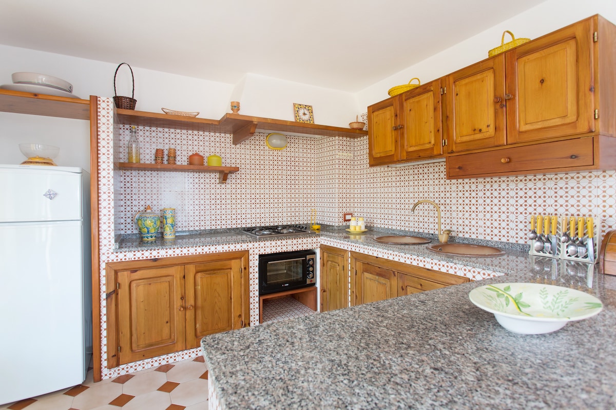 Appartamento tranquillo con terrazzo privato che si affaccia sul giardino da cui si vede il mare. Dotato di una camera da letto con aria condizionata,una cucina con piano cottura,frigo e macchina del caffè,un bagno. Nel terrazzo è possibile fare colazione,pranzare o cenare. Wifi gratuito