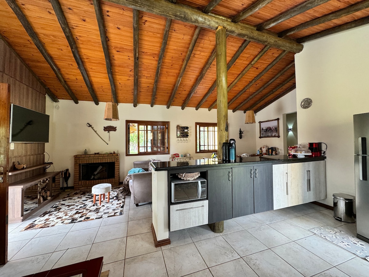 Sprostite se v tem edinstvenem in mirnem bivališču. Ročno zgrajeno s kamnom, lesom in steklom... udoben in varen kraj, sredi nasada dreves, starodavni Sítio da Alice, v mestu, v priljubljeni soseski, blizu vsega. Idealno za največ 4 osebe s kaminom, štedilnikom na drva, ki meša kolonialni in praieiro slog.