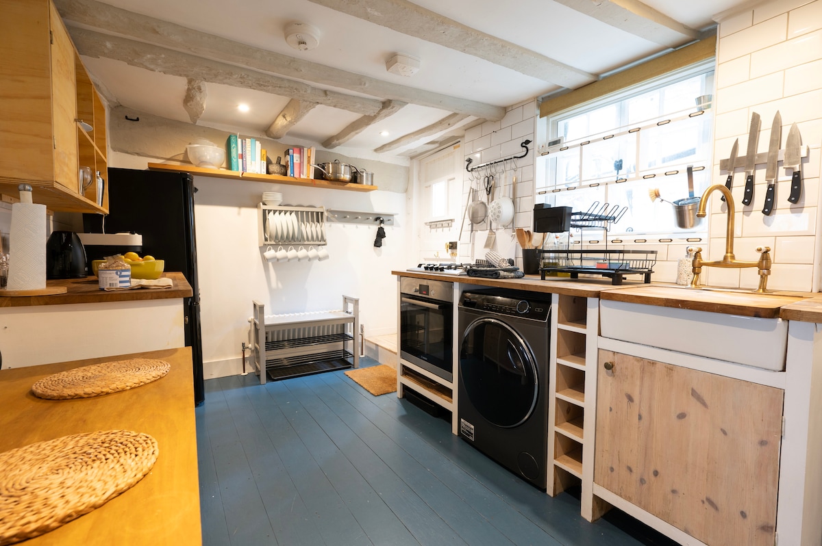 A stylish Canterbury cottage offering comfort and charm. Enjoy a luxurious roll-top bath, cosy evenings by the log burner, and a peaceful private garden. The fully equipped kitchen, fast Wi-Fi, and Smart TV ensure an easy stay. Located just moments from Canterbury Cathedral, shops, cafés, restaurants, and train links. Perfect for couples, solo travellers, or business guests looking for a relaxing and beautifully designed retreat.