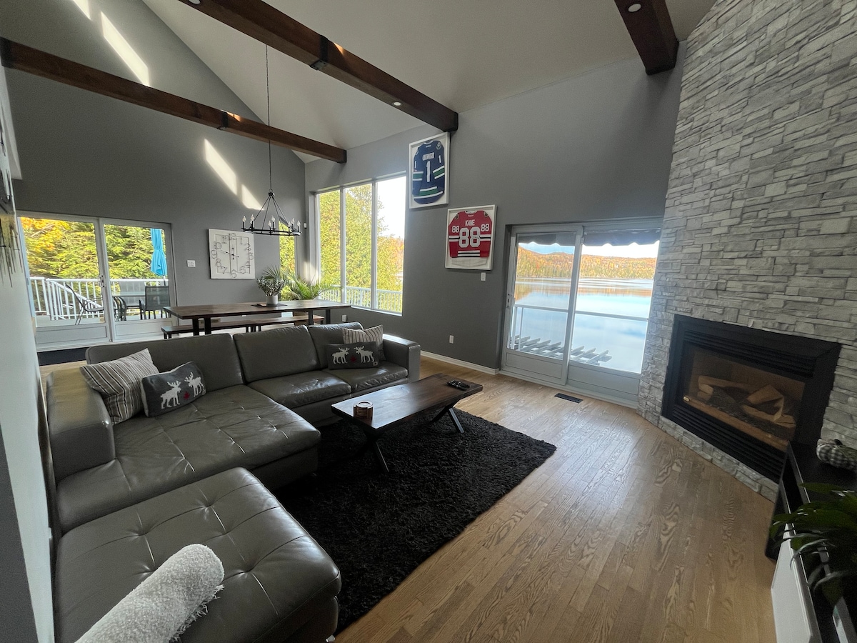 Masažna kad je odprta skozi vse leto. Pobegnite v to 3-sobno hišo ob jezeru na Lac Saint-Pierre v Val-des-Montsu! Uživajte v jasnem plavanju brez plevela, kajakih, hidrokolesu, masažni kadi in osupljivem razgledu. Udobno v zaprtih prostorih z Wi-Fi-jem, Bell TV-jem in polno kuhinjo. V bližini Edelweissa za celoletno zabavo. Rezervirajte zdaj za popoln oddih ob jezeru. Blizu smučišča Edelweiss! Posteljnina in posteljnina sta na voljo za vse postelje, razen za enojne pograde. Priporočene snežne gume Popolnoma potrjeno s strani CITQ, številka objekta 304856