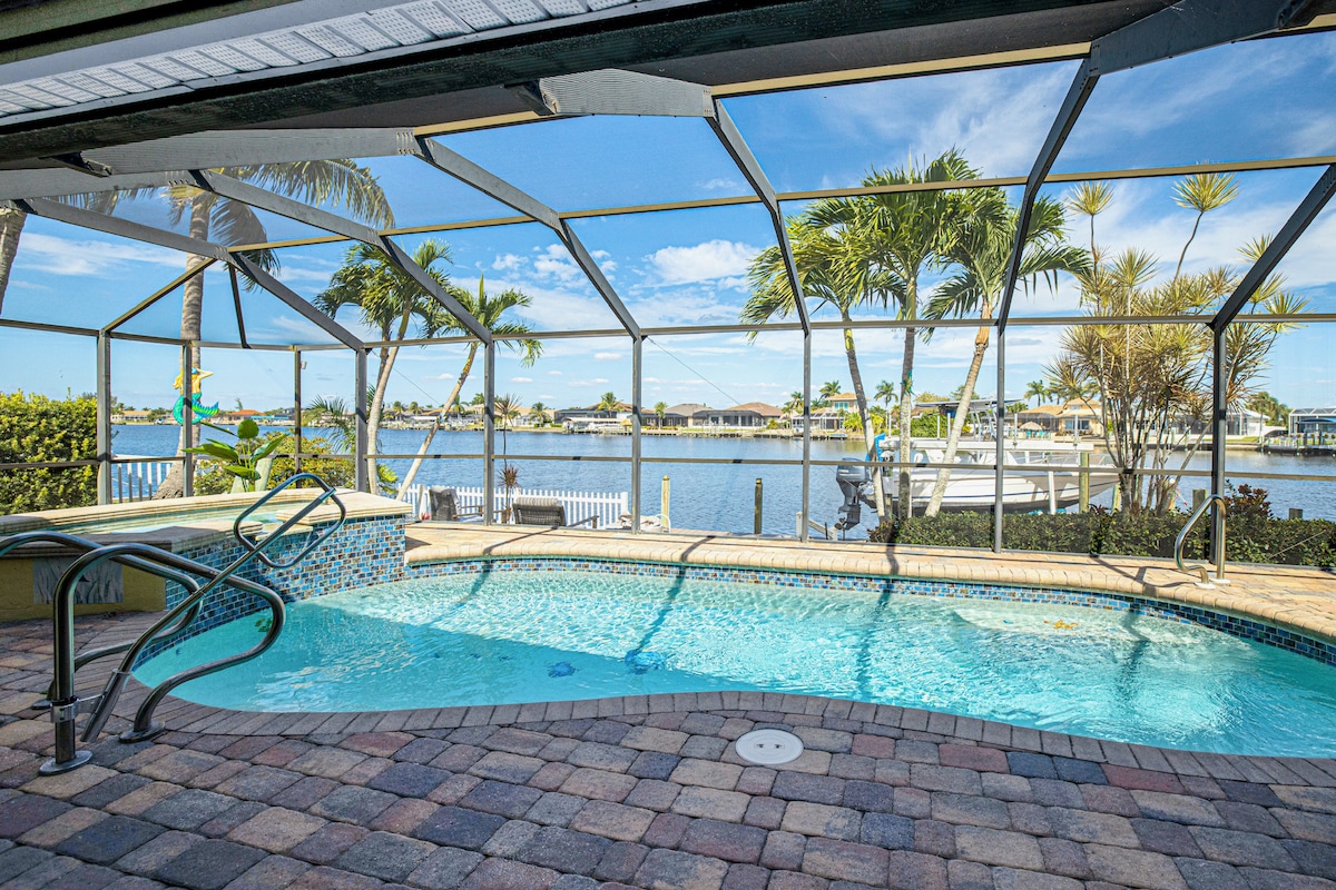 Dobrodošli v sončnem Cape Coralu! V Palaco Paradiseu lahko celo popoldne uživate v ČUDOVITEM OGREVANEM BAZENU s soncem na lanaiju. Pecite na žaru, sprostite se ali pa se odpravite 30 minut do plaže Fort Myers Beach - vključena je oprema za plažo. Bivajte več kot 4 noči za BREZPLAČNE vstopnice za vodni park. Ribe z dvorišča ali 5-MINUTNA VOŽNJA S ČOLNOM DO REKE IZ svojega osebnega pomola! Sveža kava je pripravljena, ko prispete, od letališča pa ste oddaljeni le 35 minut. Vse, kar potrebujete, nič, česarne potrebujete - samo sonce, voda in čista sprostitev!