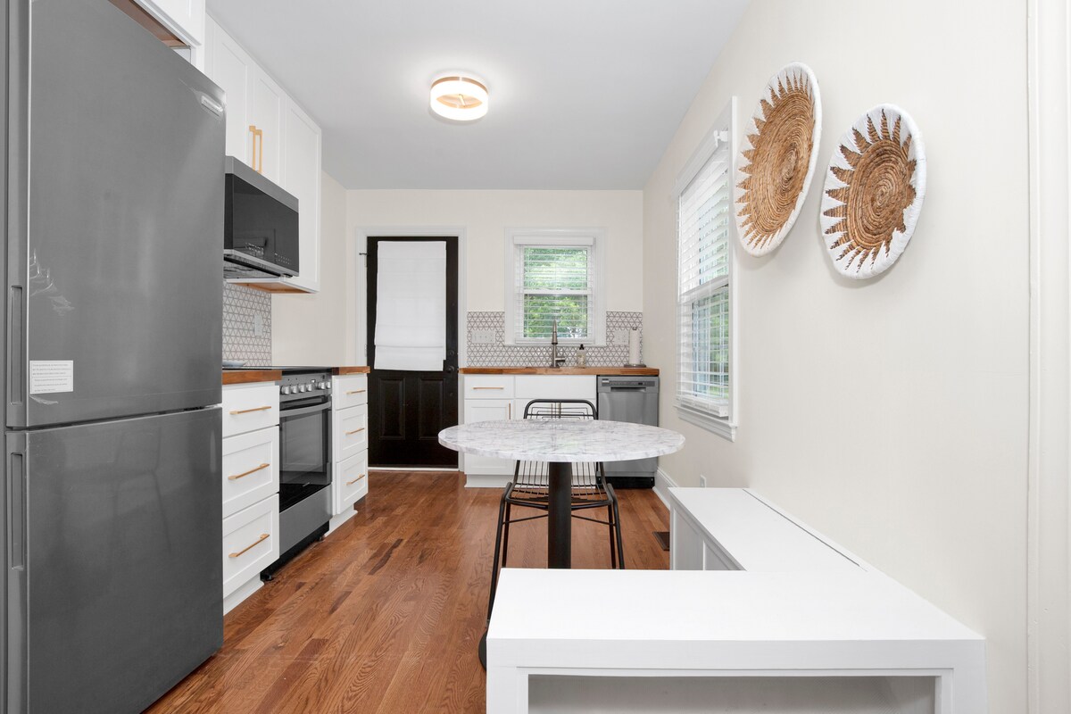 Okoli leta 1930 - Opečna hiška na deželi, ki se nahaja v mirni slepi ulici v okrožju Haymount. Sprehodite se v ustvarjalno mešanico sredi stoletja in pristno vintage, zbrano skozi leta. Dve spalnici s kakovostnimi zakonskimi posteljami in prilagodljivo sobo s futonom in delovnim prostorom. Dve kopalnici. Sprostite se na sprednji verandi ali zadnji terasi na popolnoma ograjenem dvorišču. Hoja ali kolesarjenje do odličnih restavracij, lokalnega gledališča, muzejev, točilnic in parkov!