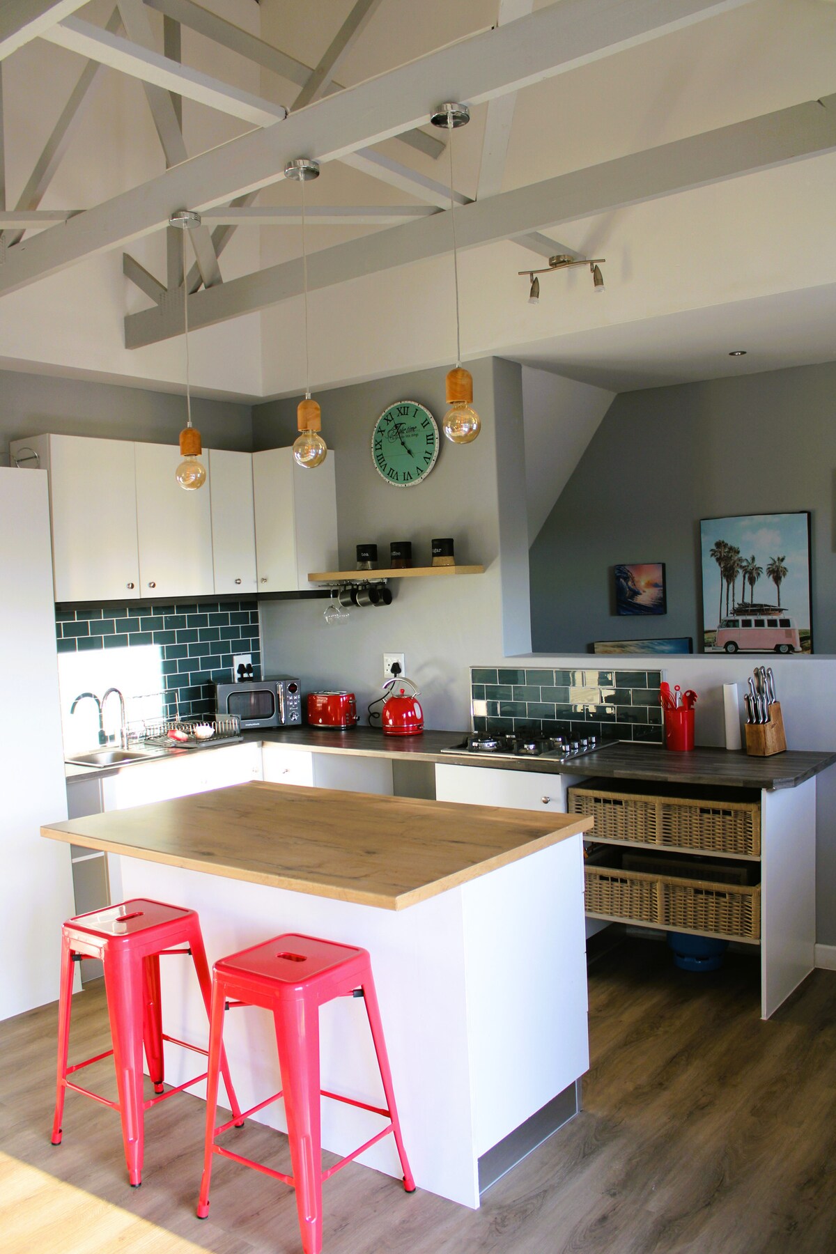 Sodobno podstrešje se nahaja v Big Bayu, le nekaj korakov od nedotaknjenih plaž za deskanje z znamenitim razgledom na namizno goro in ponuja mešanico razkošja in udobja. Z vrhunsko opremo, osebnimi detajli, kot so brezplačna vina in odlična mnenja popotnikov po vsem svetu, je to priljubljen dragulj. Ne glede na to, ali ste tukaj za miren umik ali pustolovščino ob plaži, to podstrešje obljublja nepozabno bivanje. Potopite se v sijaj Cape Towna, saj veste, da imate popoln dom - daleč od doma, ki vas čaka.