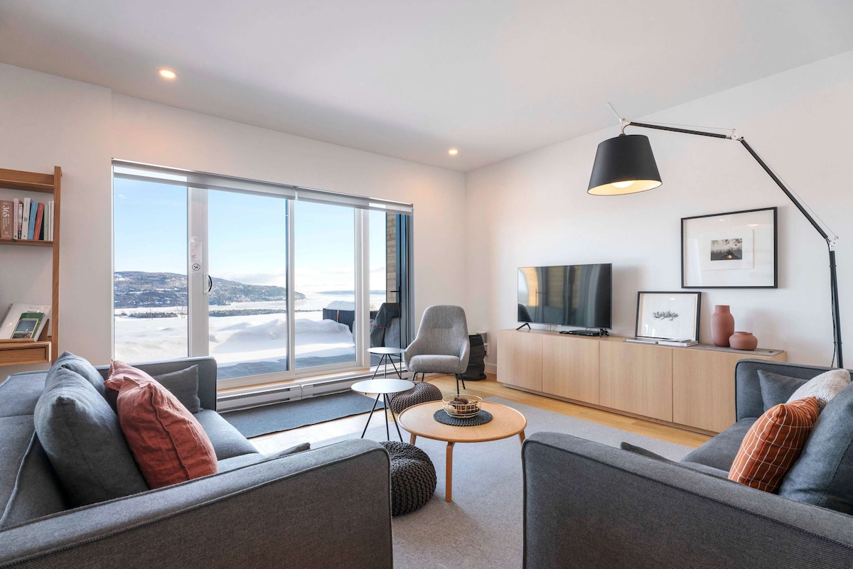 CITQ : 303435 Exp : 2026-11-30 Your Sanctuary in the Heart of Baie-Saint-Paul Let Charlevoix captivate you during your stay at the stunning condo. Overlooking Baie-Saint-Paul and the St. Lawrence River with breathtaking views, it is just minutes away from Le Massif de Charlevoix. A perfect balance of elegance, sophistication, and tranquility.