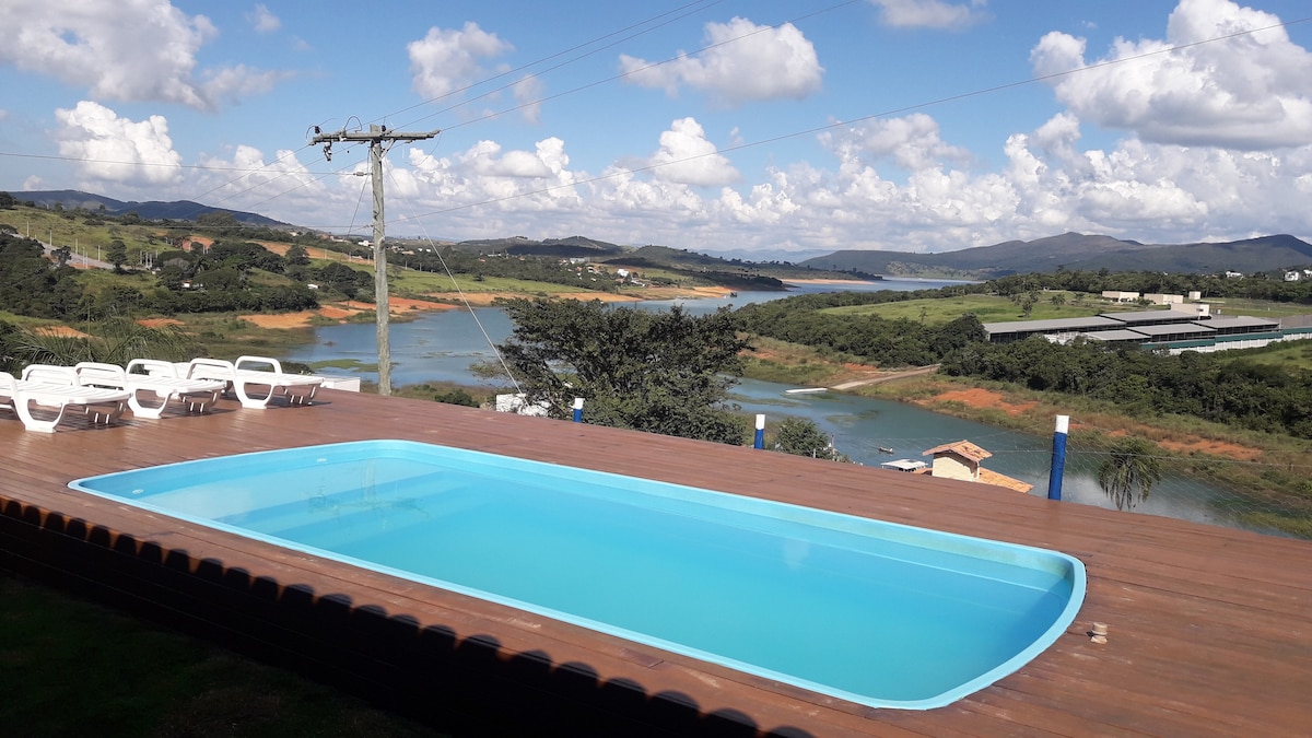Nov planinski dom, na novo zgrajen, se nahaja 3 km od centra mesta, 7 minut vožnje z avtomobilom. Planinski dom ima 1 suito z dvema posteljama, 1 zakonsko posteljo in 1 enojno posteljo, s pametno televizijo, Wi-Fi, toplo in hladno klimatsko napravo, kuhinjo s pripomočki in teraso s spektakularnim razgledom na Morro do Chapéu. Pred planinskim domom je parkirno mesto. Zagotavljamo posteljnino, brisače, odeje in blazine.