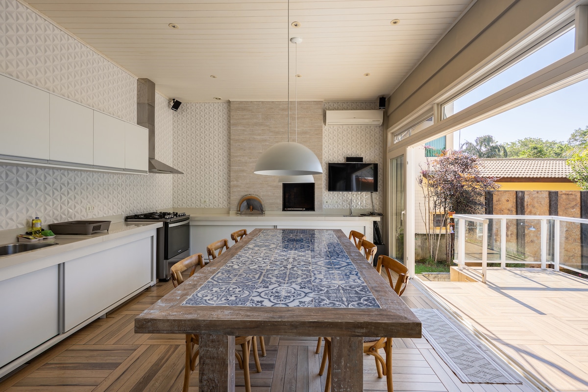 Čudovita hiša v ograjeni skupnosti s hišnim upraviteljem, varnostnimi kamerami in 24-urno varnostjo. teren ima 820 M2, Casa pa 300 M2, hiša je zaprta, kar je idealno za družine z otroki in hišnimi ljubljenčki. Poleg čudovitega zasebnega bazena je na voljo tudi jacuzzi za 6 oseb, odškodnina, talni požar. In prostor za sobivanje 80 M2 z izjemno udobnimi movel. The Condominium is great for walk and has a crystal clear water river for swim. Dve varnostni kameri, spredaj in zadaj.