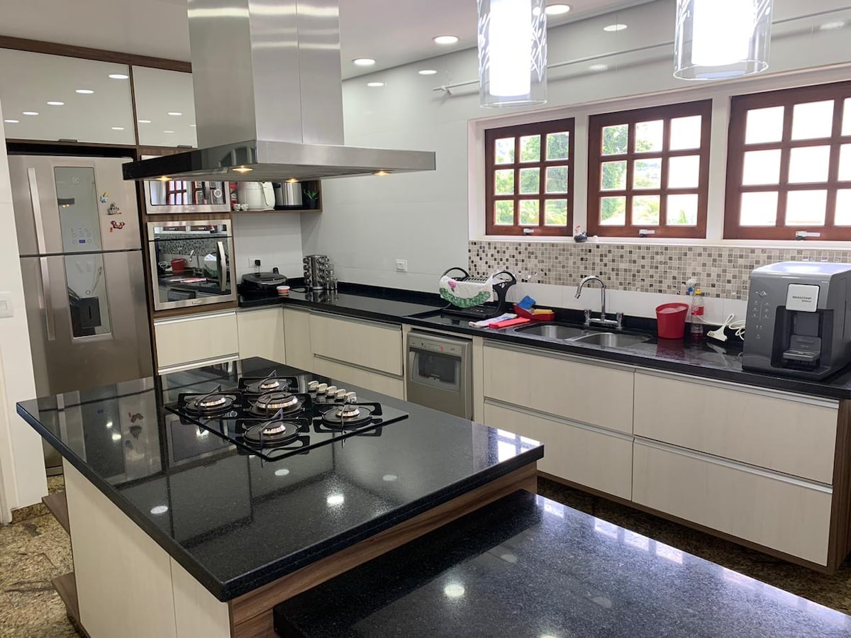 Luksuzna hiša, obdana z edinstvenim kamnom, z osupljivim razgledom na Serra da Cantareiro. V celoti opremljen in klimatiziran, s prefinjenim dekorjem, kaminom, knjižnico, ekskluzivnim delovnim prostorom, teraso z masažno kadjo, žarom. Romantična glavna suita s panoramsko kadjo. Mir in varnost ograjenega stanovanja. Opomba; Za komercialne fotografije in posnetke vas prosimo, da se za ustrezne vrednote in pravila obrnete na nas prek Airbnbja.
