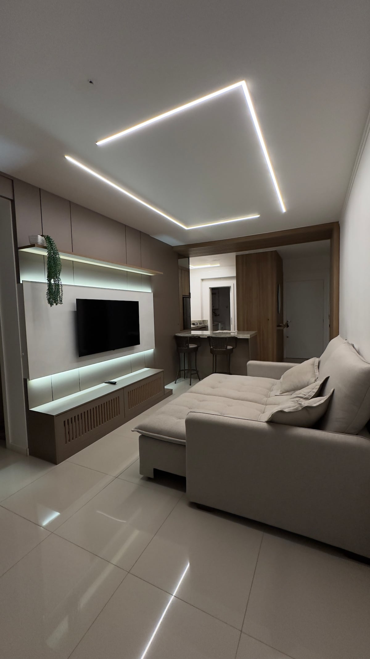 Stanovanje v središču Carazinha, popolnoma opremljeno, s pokrito garažo za vozilo, Wi-Fi, v bližini tržnic, lekarn in restavracij. Klimatska naprava v dnevni sobi in spalnici, stroj Lava-Seca. 100% opremljen.