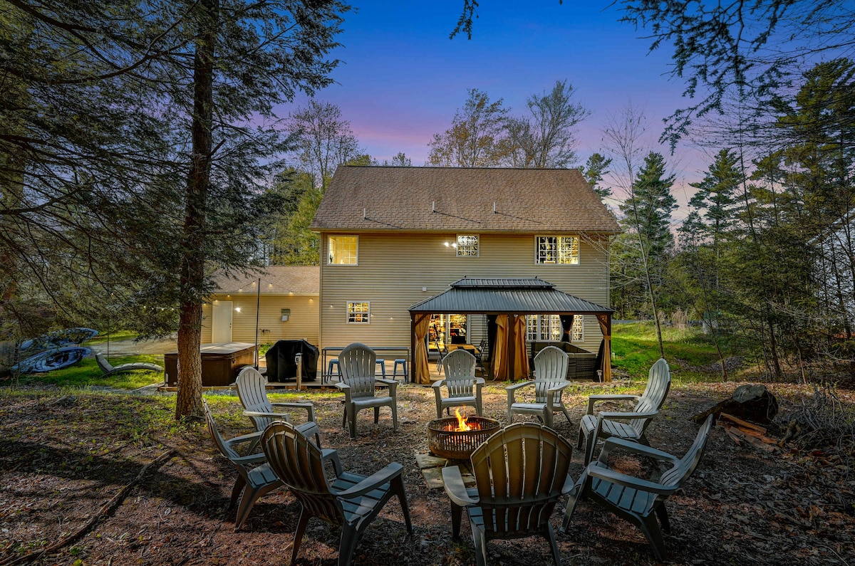 Dobrodošli v našem razkošnem dvoetažnem prenočišču s 5 spalnicami. Uživajte v dveh prostornih dnevnih sobah, notranji in zunanji jedilnici, popolnoma novem pohištvu, igralnici in igralnem prostoru z barom. Sprostite se v naši zunanji oazi z masažno kadjo, ognjiščem in prostorom za igro podkve. Le 10 minut od Jack Frosta, smučišča Big Boulder in jezera Harmony z bližnjimi znamenitostmi, kot so Camelback Resort, Great Wolf Lodge, Nascar Raceway in Mount Airy Casino. Kot nalašč za vaš naslednji oddih!