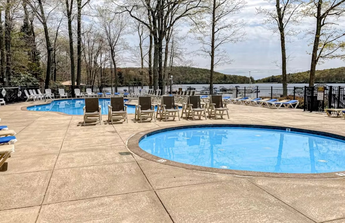 - 1. nadstropje ob jezeru na jezeru Big Boulder - Zasebna terasa z ognjiščem, - Bazen skupnosti z masažno kadjo - Dve GLAVNI SUITI – Kratka bivanja so dobrodošla - Lokalne znamenitosti Jim Thorpe Dirkališče Poconos Vodni park Split Rock IN še več - Odličen golf Jack Frost National Split Rock - Uživajte v čolnarjenju , ribolovu, pohodništvu in še več - Slikovite vožnje in lokalni parki - Pozdravite lokalne restavracije - Polnilne postaje za električna vozila na lokaciji. - Uživajte v vsem, kar ponuja Poconos