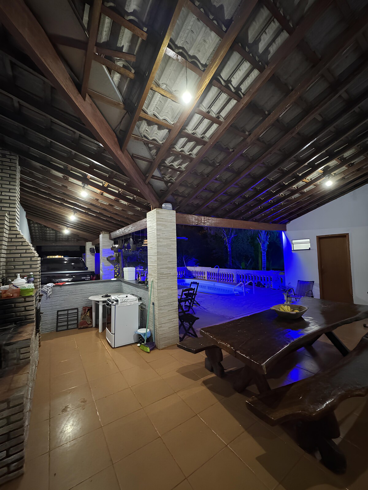 Rancho foot in the water, on the banks of Rio São João do Marinheiro, a clibutary of Rio Grande, 20 min from downtown Cardoso/SP. Klimatizirane 4-sobne nastanitve, zunanje kopalnice, žar, bazen, kamin, biljardna miza, fobolim in Wi-Fi. Casa flutante ječmen, odličen za ribolov, 20 minut z ladjo od Rio Grande Idealno za družinsko luščenje, ribolov in naravo!