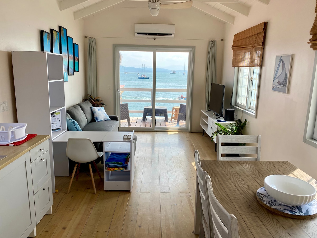Villas built over the Caribbean in some of the cleanest and clearest water in the islands. Perfect place to enjoy nearby activities and still relax in the quiet atmosphere at night. Perfect sunsets and gorgeous views of the bay. we are located 10 minutes by boat from Super market la cabana in saigon Bay.
