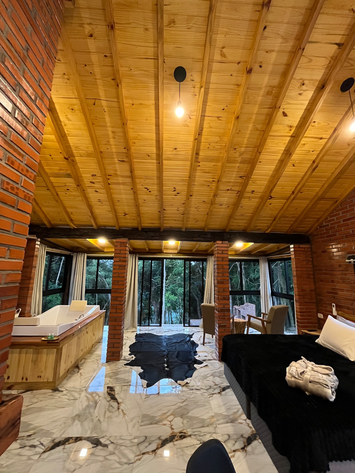 Ekskluzivna koča v osrčju Serra Gaúche z zasebnim slapom, idealna za pare, ki iščejo zasebnost, udobje in edinstveno doživetje sredi narave. Romantično zatočišče, namenjeno upočasnitvi, praznovanju posebnih trenutkov in uživanju v popolnem počitku. Ponujamo vam možnost, da prilagodite svoje bivanje z dodatnimi paketi dekoracije za praznovanja, posebne datume in nepozabne trenutke.