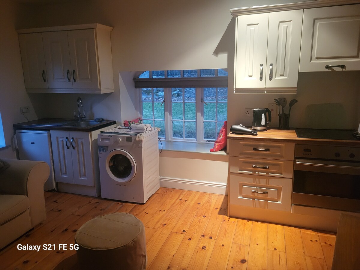 Ustvarite spomine v tem edinstvenem, razkošnem družinam prijaznem stanovanju. 1 spalnica in 1 velik kavč, samopostrežna postelja. Blizu vse lokalne opreme. Nagrajena kavarna De Mod, 2 x pivnice in trgovine nekaj minut hoje. Hiša Ballykealy 2 min, Altamount Gardens 5 min, Tullow 8 min, Rathwood 10 min, Hunting Castle 10 min, Mtạeinster 12 min, Aboretum 15 min in Carlow 15 min vožnje. Nahajamo se le 9 km od izhoda 5 z avtoceste M9. Ali pa tudi če se želite sprostiti ali delati iz drugega prostora.