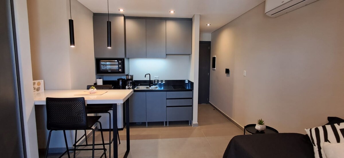 To je lepo, sodobno, novo stanovanje velikosti 65 mts2, ki se nahaja v središču mesta, 200 metrov od obale v Rio Parani. Ima spalnico z zakonsko posteljo in kopalnico v dnevni sobi, dva raztegljiva kavča in družabno kopalnico, velik balkon s pogledom na mesto in reko, samostojno polno kuhinjo z vključeno pralnico, zelo svetlo in prezračeno, 2 deljeni klimatski napravi, v spalnici in dnevni sobi, TV z LED zaslonom, kabelske kanale in hiter Wi-Fi.