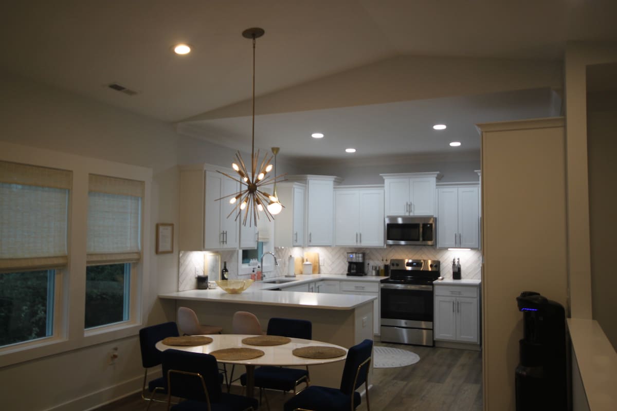 Perfect for large families, wedding guests, and group beach trips. With three primary suites and multiple gathering spaces, everyone can have privacy while still enjoying time together. The house is just minutes from the beach and boardwalk, making it easy for the whole group to enjoy Carolina Beach. Walk to the beach, boardwalk, restaurants, and coffee. A rare setup this close to the beach, the home is designed for comfort and privacy so everyone can be together without feeling crowded.
