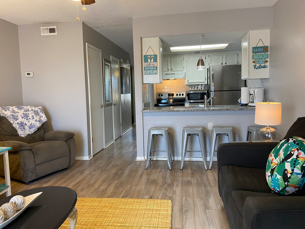 Ocean-view condo just a short walk from the beach and downtown Carolina Beach! This entire 1-bedroom, 1.5-bath condo features a private balcony with ocean and fireworks views, a full kitchen, and comfortable living space. Sleeps 4 with a queen bed and queen pull-out sofa. Perfect for couples, small families, or a girls getaway. Walk to the beach, restaurants, and shops for an easy, relaxing stay. Pool opens Memorial Day Weekend Please no golf carts on the property, as they will be towed.
