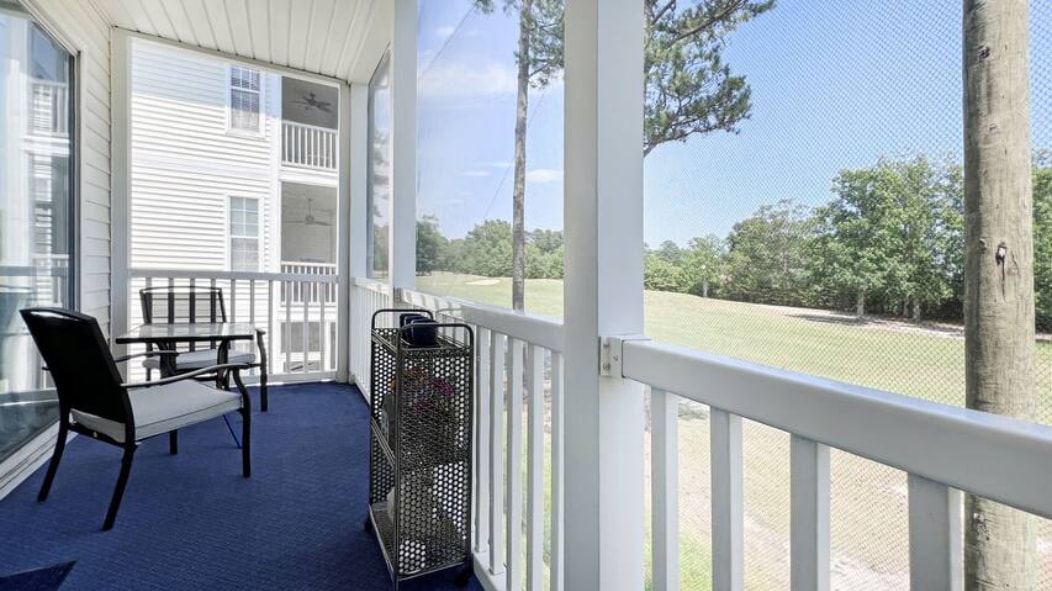 Sprostite se v tem stanovanju 2BR/2BA, le 3 km od plaže. Uživajte v pogledu na bazen in igrišče za golf z balkona. Glavna suita ima veliko zakonsko posteljo in kopalnico v spalnici, v drugi spalnici je udobna postelja, kavč v dnevni sobi pa se izvleče za dve osebi. Sprostite se z zasebnim Wi-Fi-jem, kabelsko televizijo in popolnoma opremljeno kuhinjo. Dodatki vključujejo brezplačno parkiranje, pralni/sušilni stroj v enoti in dostop do dvigala — vse, kar potrebujete za popolno bivanje. Sprostite se na balkonu s terasnimi stoli in osupljivim razgledom na golf ob bazenu.