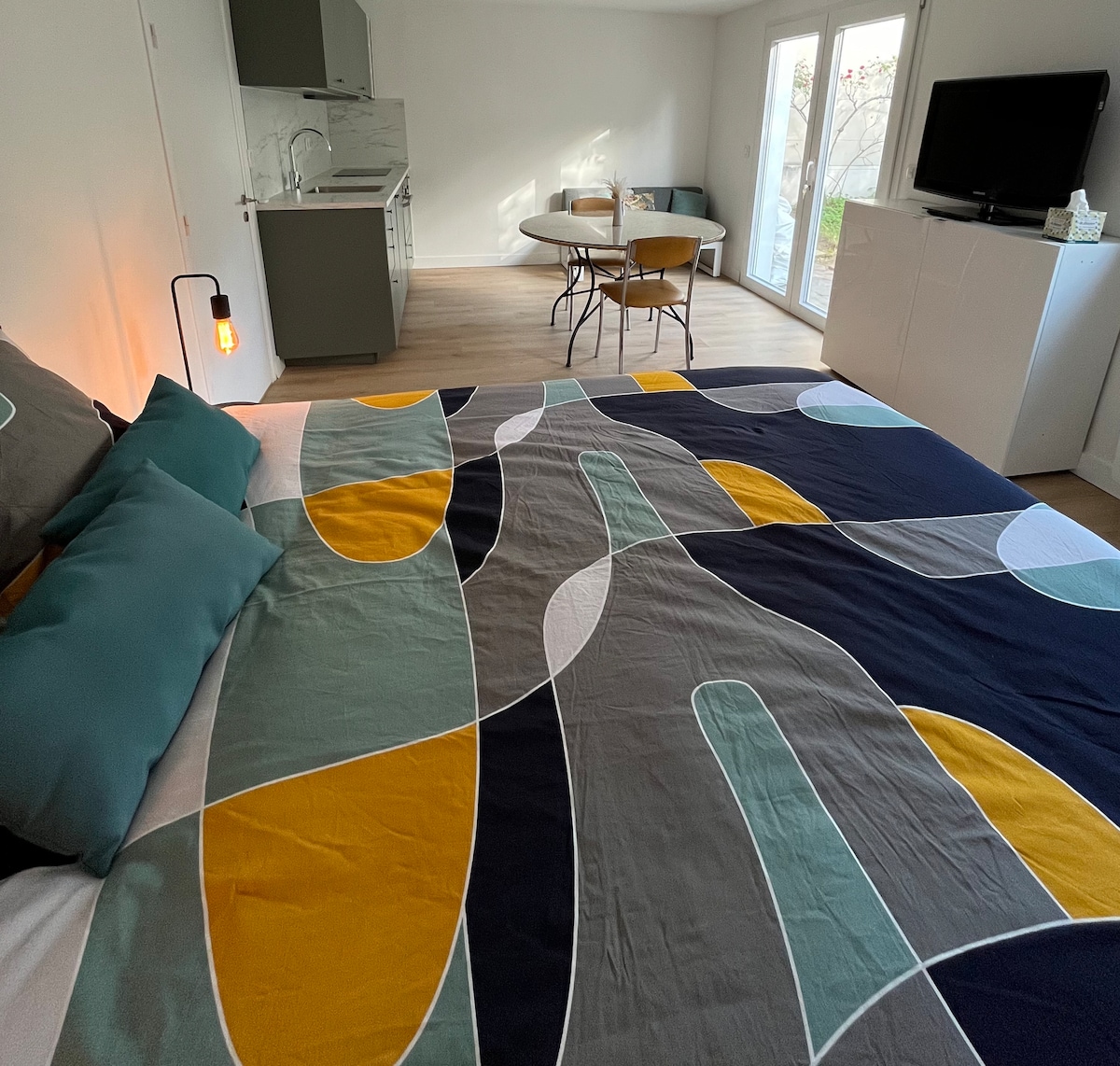 Pariz, La Defense Arena na 4 km ( 5 minut z RER) Le nekaj korakov od postaje Houilles-Carrières-sur-Seine, ki služi Parizu z vlakom (10 minut od Pariza St. Lazare) in RER (3 postaje od Slavoloka zmage). Očarljivo, svetlo studio stanovanje, prenovljeno januarja 2024, popolnoma opremljeno in vključuje: spalnico/dnevno sobo z zakonsko posteljo, 2-sedežni kavč, TV, mizo in pisalno mizo, kuhinjo, kopalnico. Zabave niso dovoljene, hišni ljubljenčki niso dovoljeni. Kajenje ni dovoljeno.