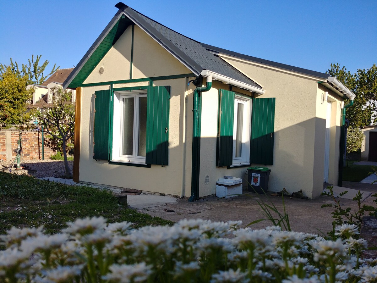 Ta očarljiva samostojna hiša v bližini javnega prevoza v mirni soseski ima neposreden dostop do vrta in bazena za glavno hišo. V pritličju je glavna soba z opremljeno kuhinjo in dnevno/jedilnico, dvojno spalnico, kopalnico in ločeno stranišče. Zgoraj je medetaža 2. spalnica s 3 posteljami (zakonska postelja +enojna postelja) in veliko prostora za shranjevanje. 10 minut hoje od RER A in linije J, 7mn od La Defense, 12mn od Pariza.