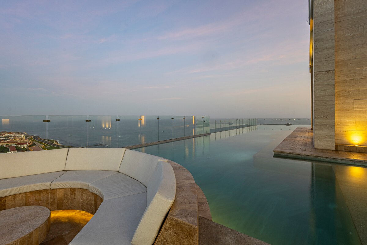 Whether you're visiting for a relaxing vacation or business, there's no better place to stay than in a strategically located apartment, with a beautiful view and carefully furnished for your comfort. • 1 bedroom, 1 bathroom, and a fully equipped kitchen. • Air conditioning, Smart TV, and high-speed Wi-Fi. • Surrounded by beaches and just 10 min from the historic walled city. • Access to pool, jacuzzi, gym, and sauna. Visitors, changing or adding guests during the stay is not allowed.