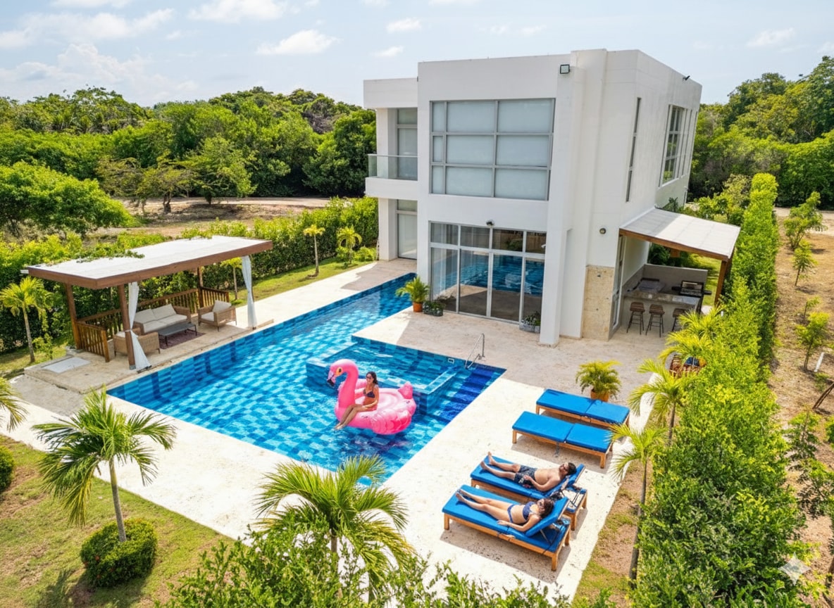 Beach House with 3 bedrooms and office, pools surrounded by nature, a rooftop with jacuzzi and minigolf. Perfect to watch the sunset with your loved ones! The home office has highspeed internet, ideal to work remotely while your family enjoys paradise. 2 minute walk from the home is our private community beach club with infinity pool, kid's pool, dock and beach access which you can enjoy at any time. The beach club area is shared with 10 other houses in our community.