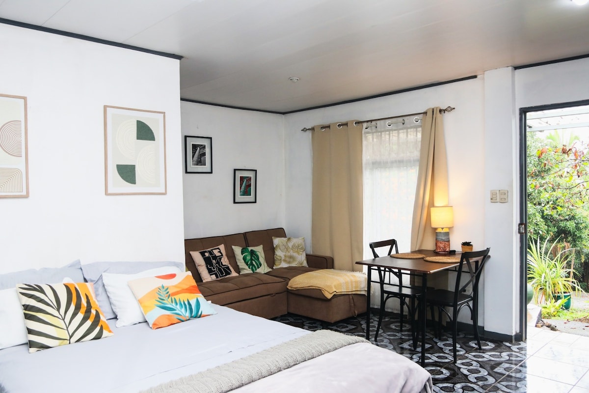 Welcome to our cozy apartment in Grecia, perfect for 2 guests (up to 3) with a double bed and sofa bed. includes WiFi,TV, a fully equipped kitchen, and a private bathroom with hot water. Located on a peaceful 2-acre property with fruit trees, just 4 minutes from downtown. Enjoy a traditional Costa Rican breakfast with pinto, eggs, natilla, and sweet plantains. Relax in your private cold-water garden tub after exploring nearby attractions like Parque Nacional Volcán Poás.Family-run and welcoming.