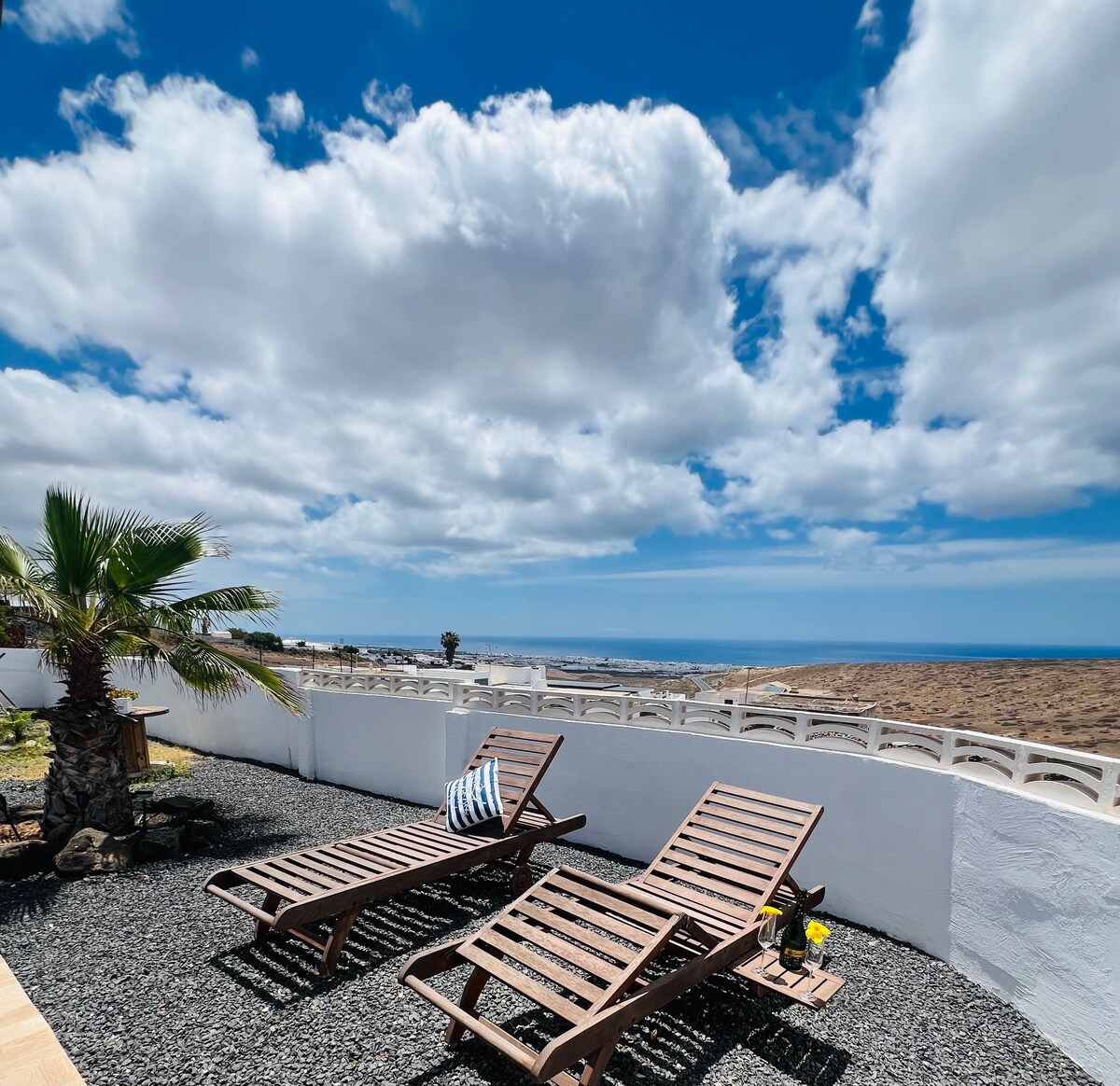 Stay in one of two charming 80 sq m modern hippie apartments with a unique view of Timanfaya National Park and its volcanoes. The apartment features a fully equipped kitchen, a living room with panoramic sliding doors and a sofa bed, HDTV, fiber optic internet, and a bedroom with a Canarian-style en-suite bathroom. Relax on your private terrace, dip your toes in the César Manrique saltwater pool, enjoy the endless vistas, and marvel at magical sunsets. 🩵