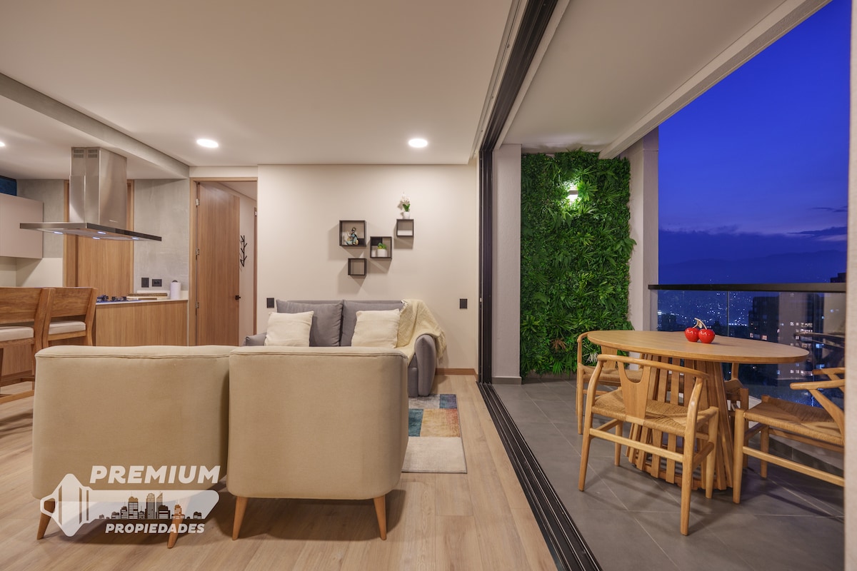 Razkošno predelano stanovanje v velikosti 70 m² v 9. nadstropju znamenite stavbe Energy Living. Odprite naša okna od tal do stropa in spremenite celoten bivalni prostor v zračen prostor na prostem z najboljšimi razgledi na obzorje Medellina. Vključuje zakonsko posteljo (King), dva 80-palčna televizorja in elegantno sodobno zasnovo. Uživajte v neskončnem bazenu na strehi, telovadnici in masažni kadi v 22. nadstropju. Nahaja se 5 minut od sosesk Provenza in El Tesoro. Varno, tiho in odlično povezano.