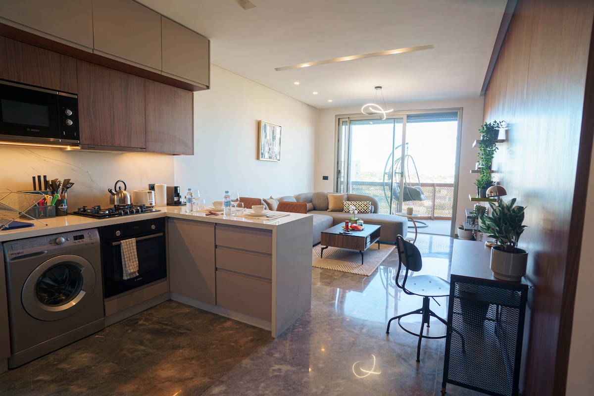 Perla 403💎, zatočišče miru, kjer se eleganca sodobne rezidence združuje z udobjem 5* hotelov v osrčju Casablance! Sprostite se v prostorni dnevni sobi s sodobnim dizajnom, opremljeni s 55-palčnim pametnim televizorjem z Netflixom in IPTV-jem za popolne sprostitvene večere. Soba, resnično udobno gnezdo, obljublja mirne in obnovitvene noči ☁️ Z zasebnega balkona opazujte čudovite sončne zahode mesta, da bo vsak trenutek vašega bivanja nepozaben! ✨