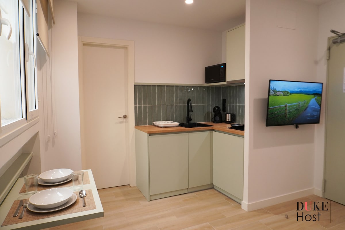Udobno garsonjero s pogledom na mesto in kuhinjsko nišo v Chueci