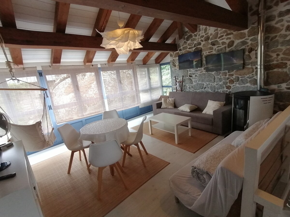 Una pequeña casa restaurada en 2018, que mantiene su esencia tradicional junto con un toque moderno y minimalista. #Turismo activo: existen rutas de senderismo de distinta dificultad en el pico más alto de Galicia, Pena Trevinca y en el segundo mayor conjunto de lagunas de origen glaciar de la Península Ibérica: ºPR-G 200 - LAGOAS GLACIARES DA SERPE E DE OCELO ºPR-G 198 - MALURO E PENA TREVINCA ºPR-G 201 - RUTA INTEGRAL SERRA CALVA ºSenda Verde do Xares.