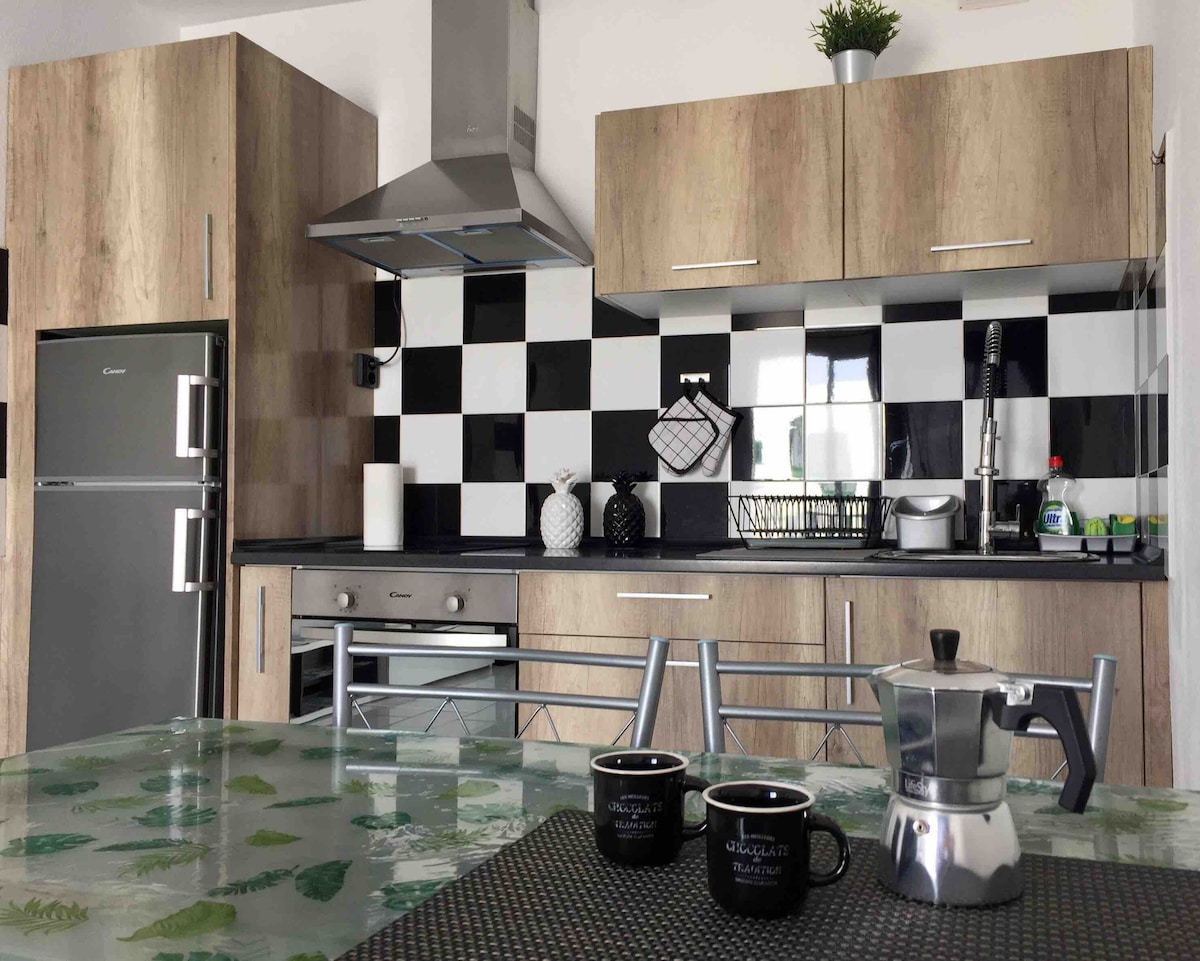 Ta udobna hiša se nahaja v mirnem stanovanjskem območju le 15min hoje od centra mesta.S 3 prostorne spalnice,lepo kuhinjo,veliko dnevno sobo z udobnim kavčem, kjer se lahko sprostite po dolgih dneh na plaži.Hiša ima 2 velike terase z vrtovi,kot nalašč za zajtrk na prostem,ali preživite romantičen sončni zahod s kozarcem vina.Bari,restavracije,supermarketi so le 5min hoje.Plaže v bližini 15min.Vsak torek in petek lahko obiščete obrtno tržnico,ki je le 10min. hoje.