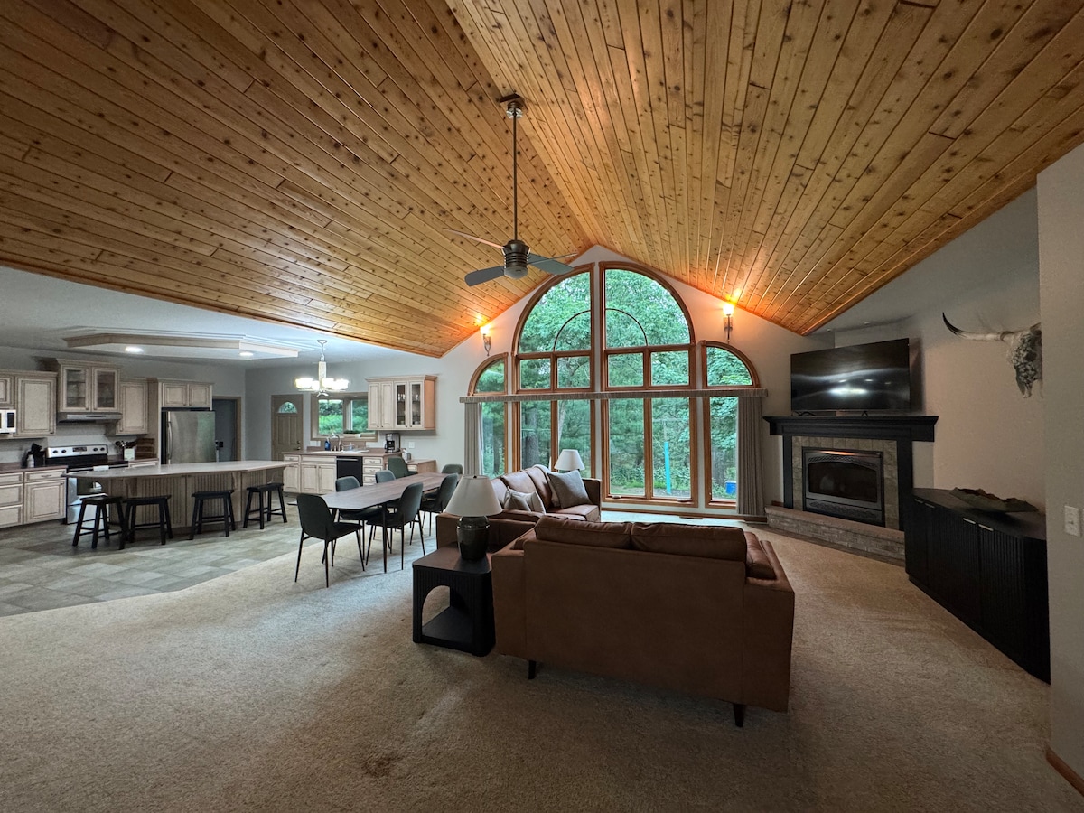 Pošljite mi sporočilo, če vas zanima in želite spoznati najboljše restavracije in bare, ki jih lahko obiščete! Pridite in izkusite to prenočišče s petimi spalnicami in tremi kopalnicami, ki je predstavljeno tudi kot prenočišče z dvema spalnicama in dvema kopalnicama za zimski oddih. Ima dve zunanji terasi, žar na propan, ognjišče na propan in ognjišče na drva, arkadne igre, družabne igre, plažo s pogledom na jezero (brez motornega), desko za veslanje, kajake in zabaven dom s tematiko kavboja!