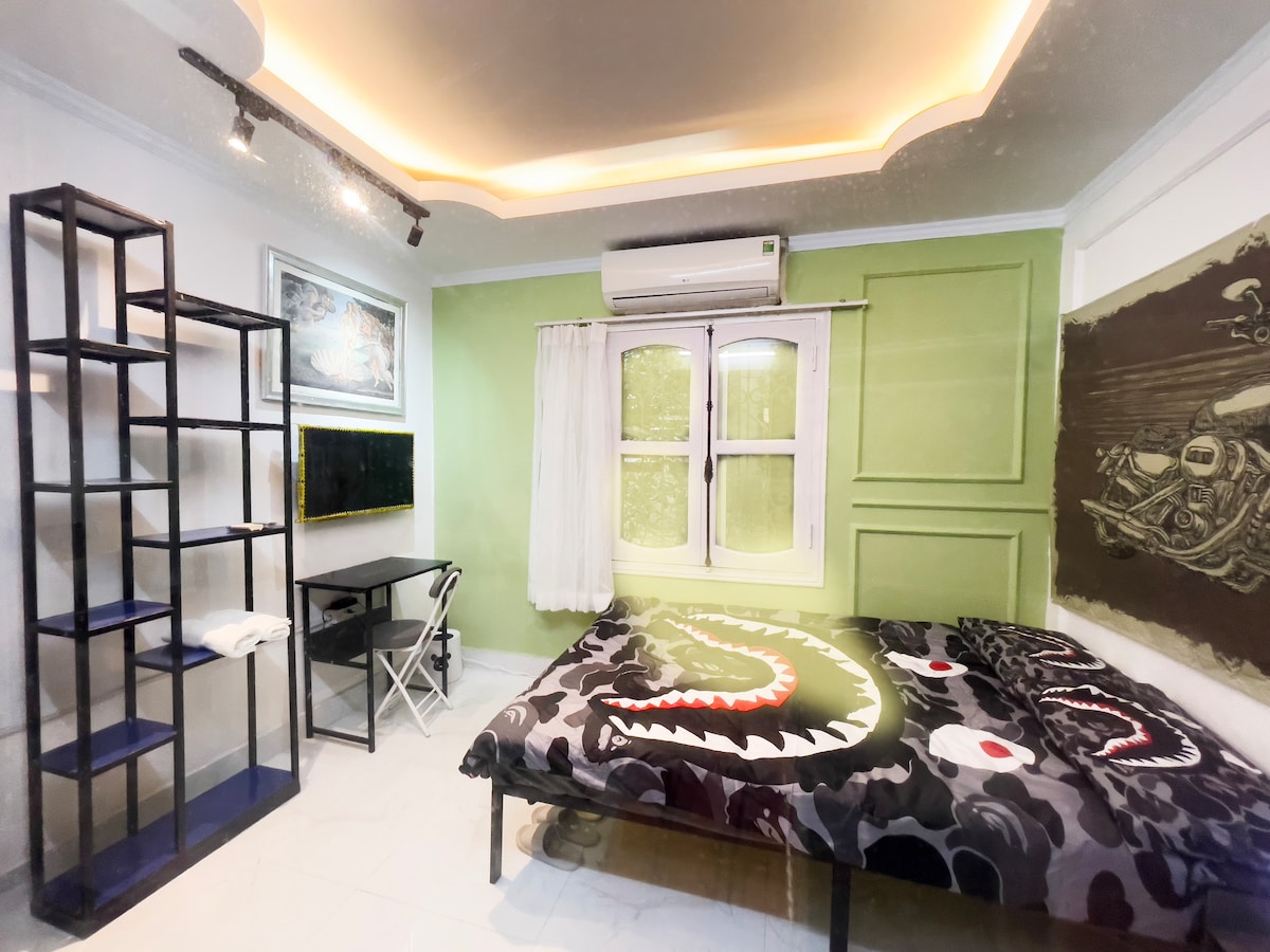 Stanovanje Annam – kjer se francoska dediščina sreča s sodobnim življenjem Čudovito obnovljena kolonialna vila nasproti templja književnosti. BREZČASNA ELEGANCA: doživite pristen francoski kolonialni šarm z izvirnimi detajli — okrašena okna iz kovanega železa, visoki stropi in elegantni oboki. POPOLNA LOKACIJA: neposredno obrnjen proti templju književnosti, le 10 minut do stare četrti. SODOBNO UDOBJE: uživajte v popolnoma novi opremi, sončnih sobah in velikem projektorju za prijetne filmske večere.