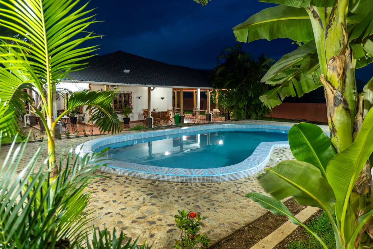 ¡Vive una Aventura Inolvidable en Nuestro Rancho Ganadero! ¿Buscas escapar de la rutina y conectar con la naturaleza? Te ofrecemos una experiencia auténtica de vida campestre. Ideal para familias, amigos y grupos grandes. 3 habitaciones, 3 baños, A/C e Internet. Escríbenos y te explicamos cuántas personas puedes albergar. Actividades : piscina, río, bicicletas, caballos, cancha de fútbol,ordeno, senderos, trampolín, área de barbacoa y fogatas. Habitación #4 con jacuzzi.(Extra Cargo)