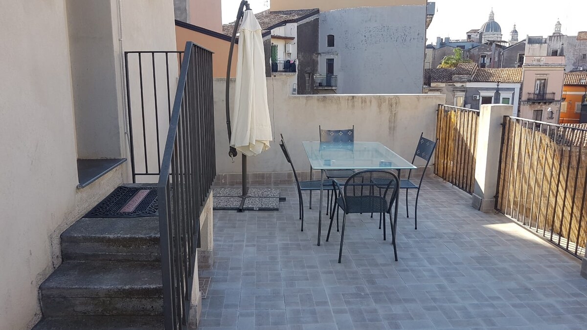 Apartma/penthouse se nahaja v osrčju baročnega zgodovinskega središča, ki ga sestavljajo velika kuhinja dnevna soba, dve spalnici z zakonsko posteljo, kopalnica z veliko tuš kabino, velika terasa opremljena z mizo, stoli in senčnikom ter manjša terasa s pogledom na pristanišče Catania. Opremljeni z vsemi potrebnimi udobja za življenje sproščujoče bivanje, kamen je met iz nočnega življenja in kraji kulturno-zgodovinskega pomena, ne da bi morali uporabljati javni ali zasebni prevoz.