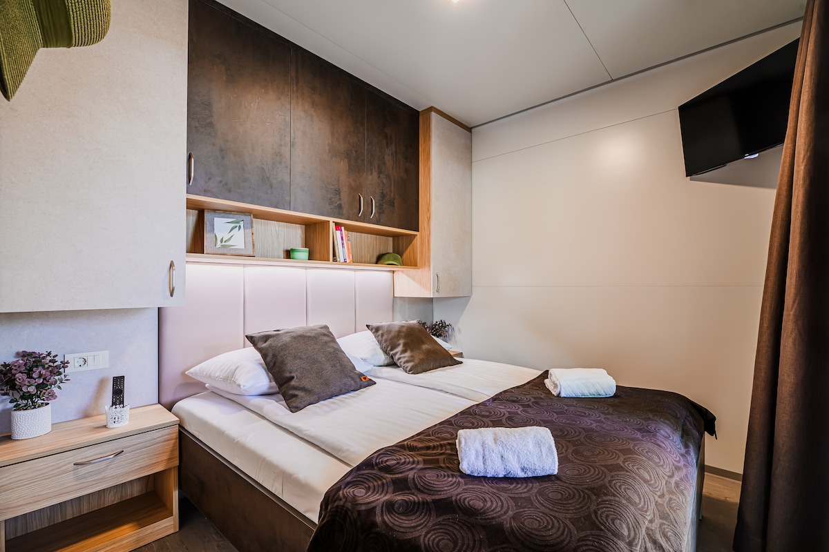 Dobrodošli v naši udobni mobilni hiški sredi narave v kampu Natura, le nekaj korakov od Aqualune in nekaj minut hoje od znamenitih Term Olimia v Podčetrtku! Hiška ponuja 30 m² prijetnega bivalnega prostora in je idealna za družine ali pare, ki si želijo sproščen oddih v objemu narave. Na voljo sta dve ločeni spalnici z zakonskima posteljama, popolnoma opremljena kuhinja z dnevnim prostorom, lastna kopalnica in prostorna terasa z jedilno mizo ter žarom