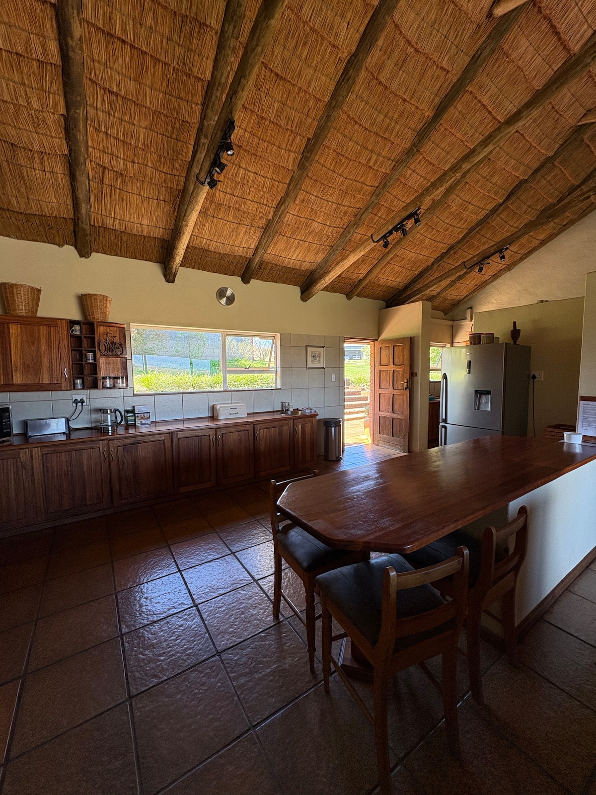 Beautiful thatched cottage with an extra Rondavel set on our farm in the Northern Drakensberg area. It has its own private garden with lawns down to the edge of the dam. In the corner is a gorgeous private swimming pool to enjoy sundownders in on hot lazy summer evenings or keep the kiddies busy. The pool is safely fenced off. Ideal for a couple or a larger group. Lovely farm holiday for all. Although it can sleep 10 comfortably it is perfect for a cosy get away for just two. You will love it.