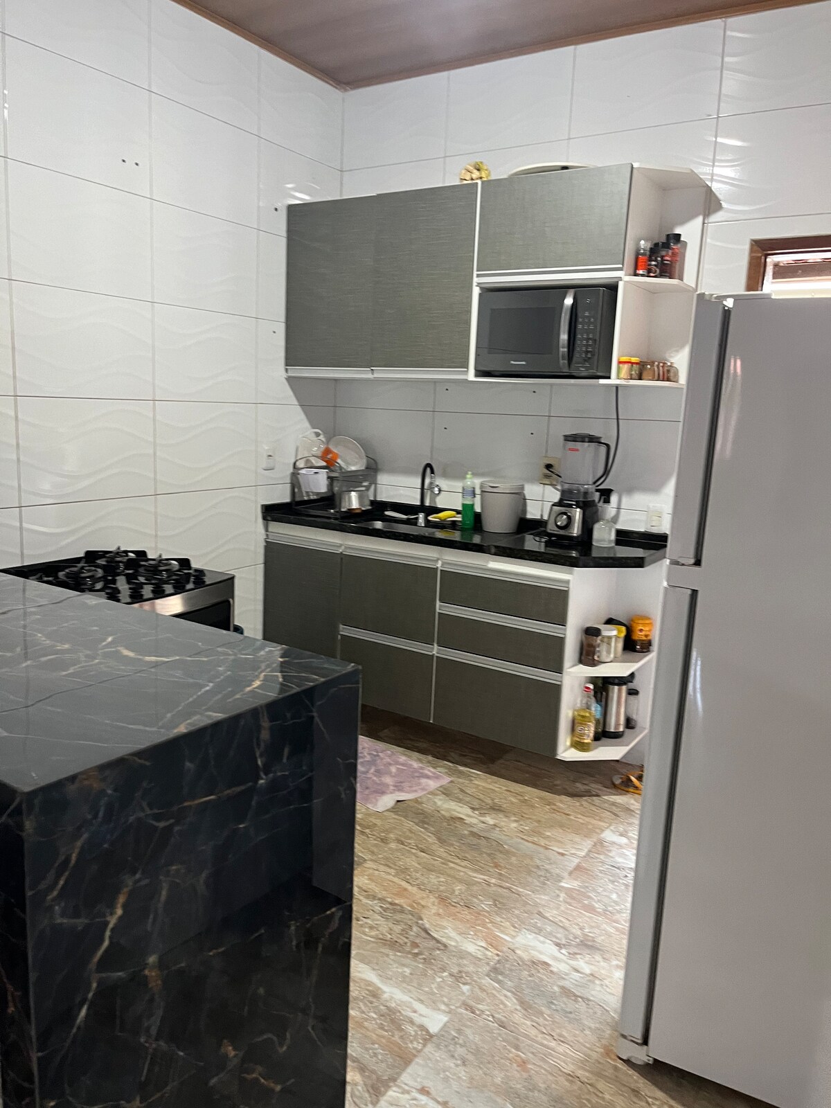 Esta acomodação elegante, é perfeita para que busca uma estadia completa. Uma excelente opção para desfrutar de um dia ou vários, com privacidade e conforto. Super bem localizada, próximo de vários comércios, supermercado e ponto de ônibus. Rodoviária 5 min à pé Aruanha 7 min à pé Centro da cidade 25 min à pé