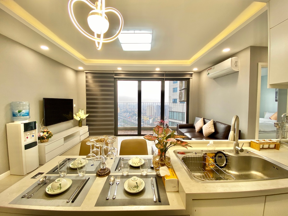 ◈ Veriga sodobnih stanovanj, ki se nahajajo v razkošnih stanovanjskih kompleksih v Hanoju. Vinhomes D’Capitale je eden najboljših krajev za življenje v Hanoju. Vsako stanovanje je okusno urejeno, bleščeče čisto in ima čudovit pogled na mesto, pogled na jezero iz najboljših nadstropij. Ponujamo popolno nastanitev za pare, družine, poslovna potovanja ali samske popotnike. ◈ To popolnoma novo stanovanje ima 2 spalnici z vzmetnicami, 1 zasebno kopalnico in dnevno sobo z udobnim kavčem za sprostitev s pametno televizijo.