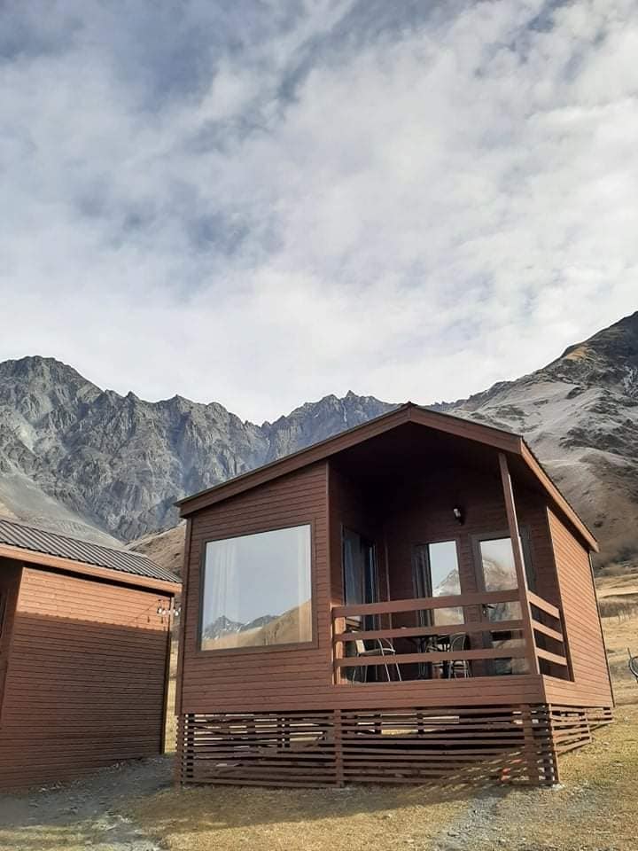 lesene hiške na deželi s čudovitim razgledom v Kazbegiju