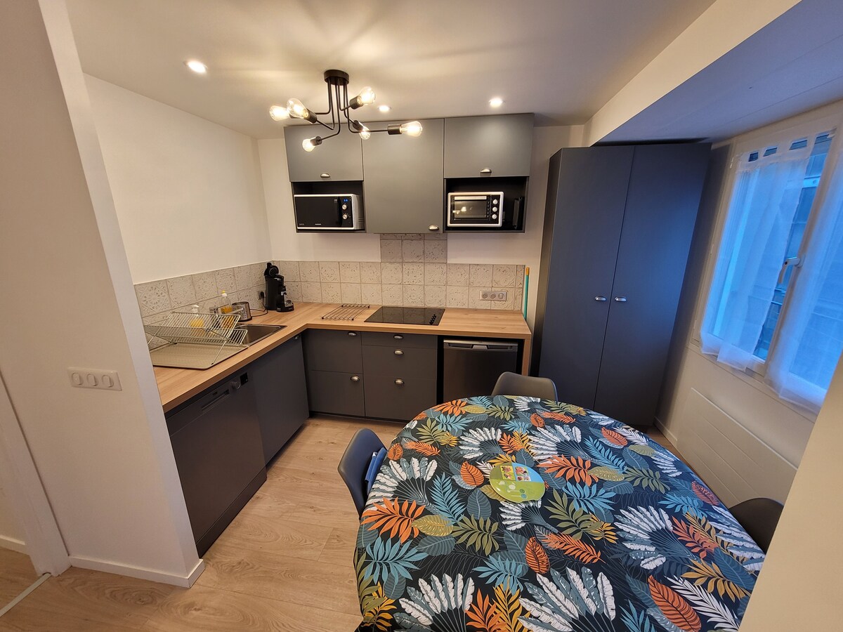 Stanovanje 100% cocooning, v drugem nadstropju majhne stavbe. Mirna lokacija, medtem ko se nahajate v osrčju vasi, z dovolj ne-zasebnega parkirišča. Udobno gnezdo velikosti 35 m2 za 4 osebe, toplo in prefinjeno. 100 m2 terasa in zasebni vrt. Spanje: 1 spalnica s posteljo v velikosti 140x190 in velika garderoba, raztegljiv kavč s pravo vzmetnico v velikosti 140x190 Postelje, izdelane ob prihodu. Popolnoma opremljena kuhinja. Kopalnica s prho, ločeno stranišče. Kopalne rjuhe so vključene.