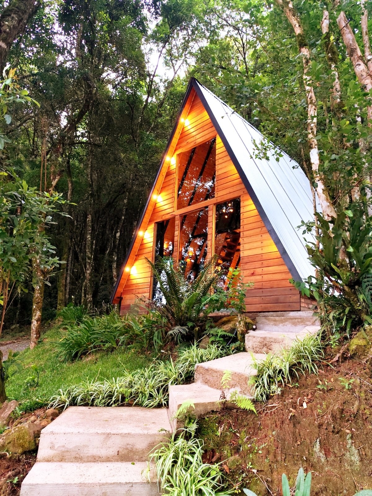 Uma cabana A frame imersa na mata nativa e nos parreirais de uma família de origem italiana. Projetada para acordar com o som dos pássaros e dormir com o barulho da água. O ponto alto fica logo na chegada, o deck fica em cima de uma cachoeira. A cozinha é completa com utensílios de ótima qualidade. O banheiro tem vista para a mata, banheira de imersão e amenities L'Occitane. Todos os cômodos são decorados nos mínimos detalhes. Ideal para relaxar e se colocar no compasso certo da vida.